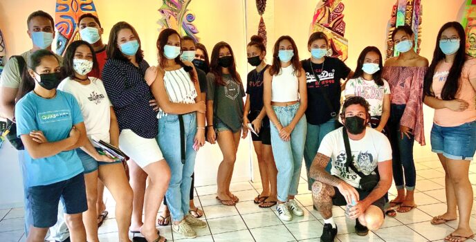Bonjour, Après l’exposition de l’artiste Cronos, les élèves de l’atelier artistique du lycée collège Pomare IV ont pu visiter ce lundi 18 octobre 2021, l’exposition « Welcome on board » de l’artiste Hell Ton John, à la galerie Winkler. La galeriste Vaiana nous a fait l’heureuse surprise d’inviter l’artiste. Ce fut un moment très agréable. L’artiste …